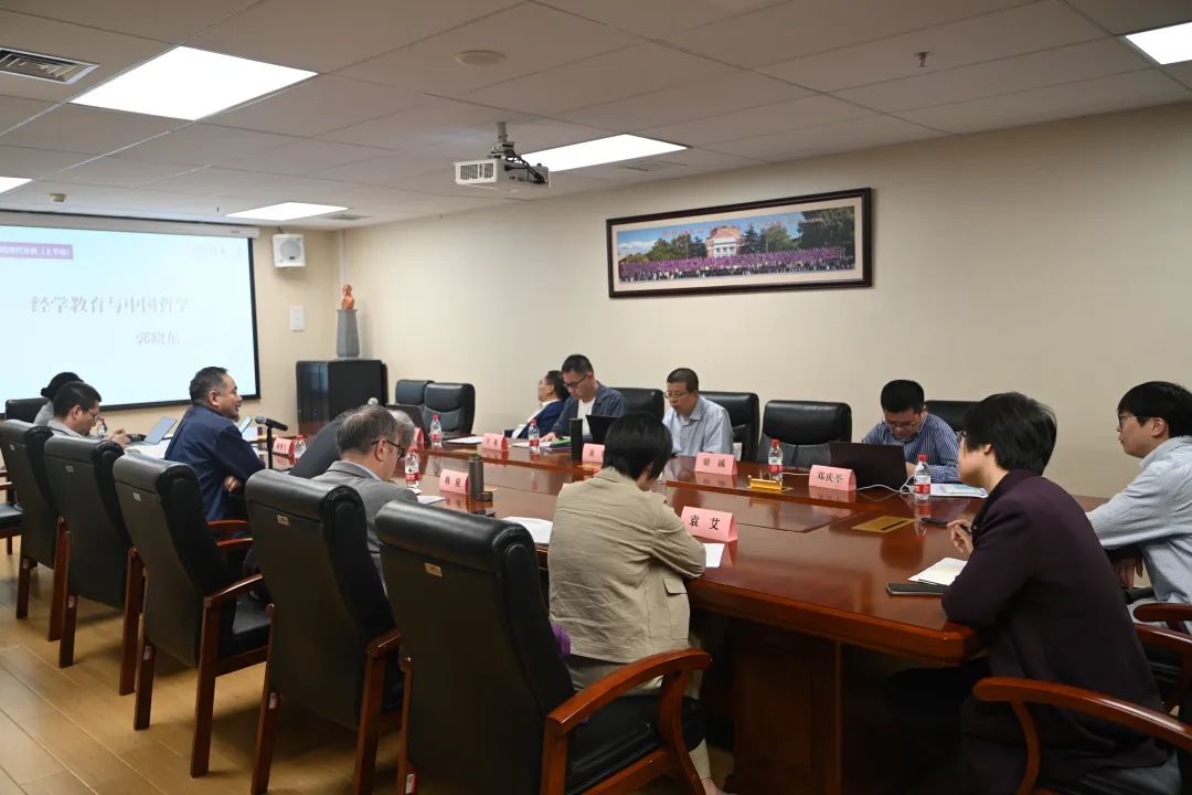 4月27日,由清华大学国学研究院主办的“当代大学与传统文化教育”国学院联合论坛在北京举行。孔子研究院院长孔德立教授受邀参加论坛,孔子研究院辛敬博士在“传统文化的现代诠释”分论坛的研讨环节以《“祛魅”时代中的儒家天人论重构》为题作学术发言。