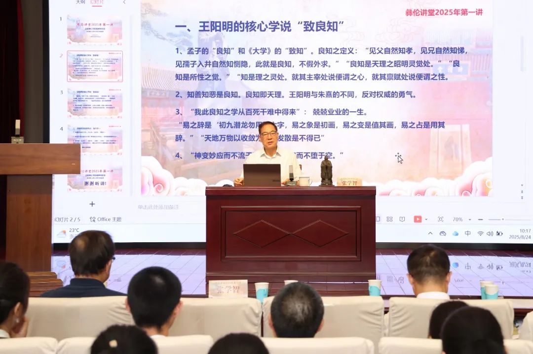 8月24日,由孔子研究院、孔庙和国子监博物馆联合主办,中国孔子基金会孔子世家专项基金支持的彝伦讲堂2025年第一讲在北京国子监彝伦堂举办。北京大学哲学系教授张学智受邀担任主讲嘉宾,作了题为“王阳明心学的精神与智慧”的专题讲座。