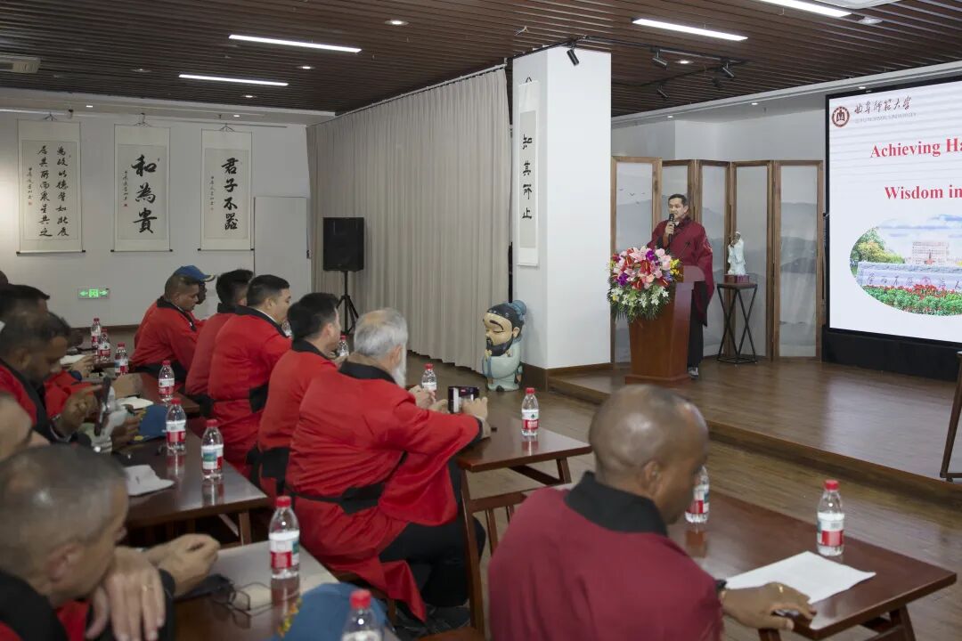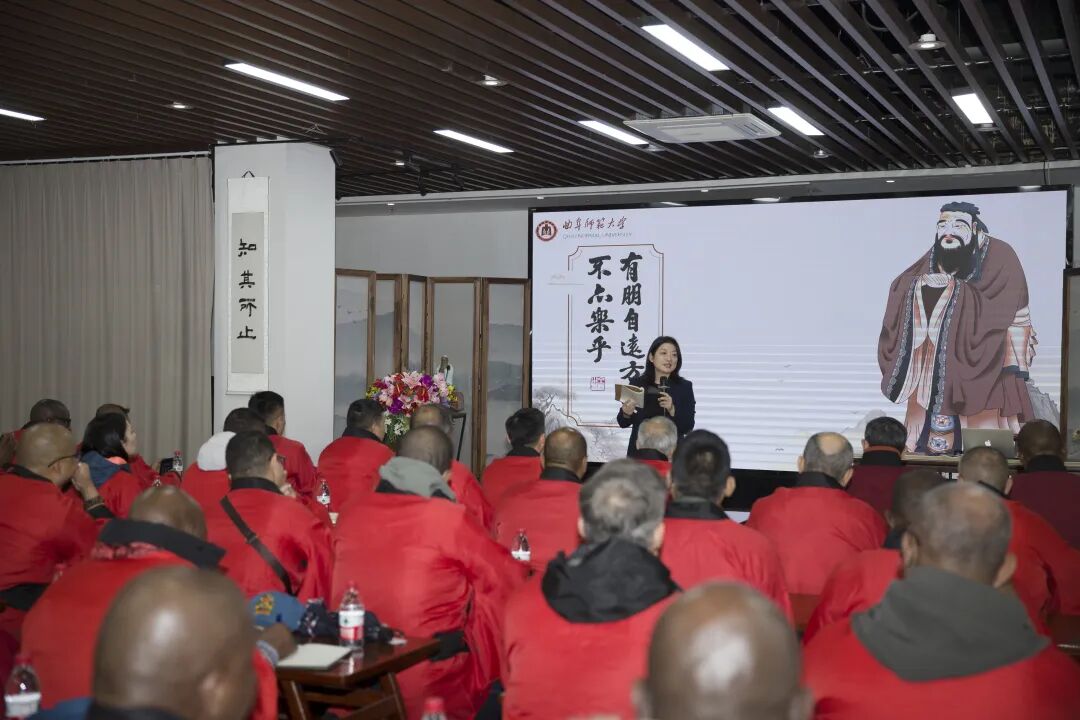 曲阜师范大学王秀卿教授为留学生们授课。她系统阐释了儒家思想中的道德观念与教育理念,深入剖析“仁、义、礼、智、信”的核心内涵,揭示了儒家思想的精神本质,以及其对中华文化的深远影响,指出儒家智慧能够为应对当今世界所面临的诸多挑战提供重要的思想资源与实践启示。
