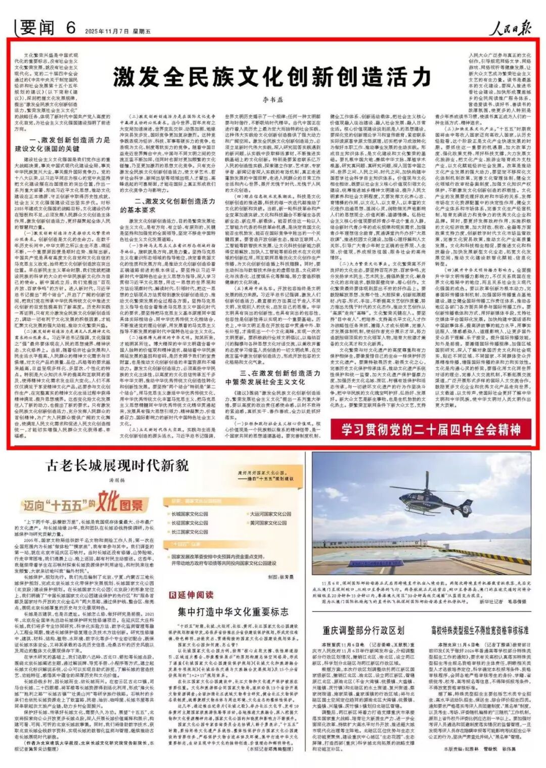 《建议》围绕“激发全民族文化创新创造活力,繁荣发展社会主义文化”提出一系列重大举措,要以高度的政治责任感使命感,以时不我待的紧迫感,真抓实干、善作善成,全力以赴抓好落实。