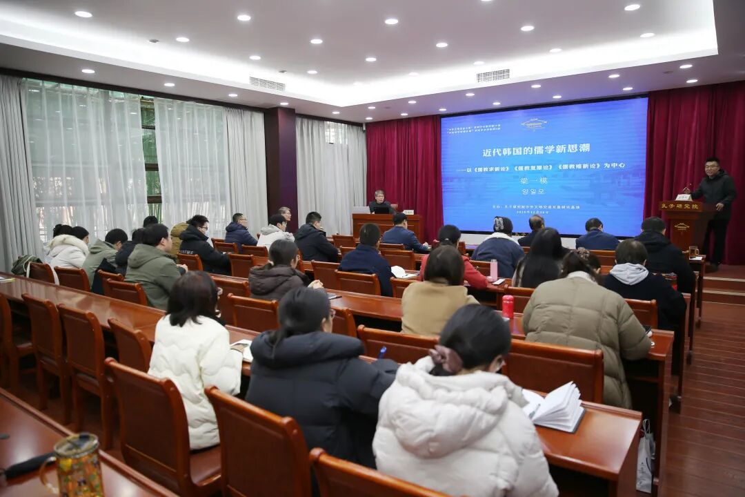 12月16日,“齐鲁访学驻研计划”系列学术讲座第八讲暨“中外文明交流互鉴”系列学术讲座第二十五讲在孔子研究院举行。2025年度齐鲁访学驻研计划(孔子研究院)访问学者、韩国首尔大学自由专攻学部教授梁一模(양일모)主讲“近代韩国的儒学新思潮——以《儒教求新论》《儒教复原论》《儒教维新论》为中心”。孔子研究院党委副书记、院长孔德立,党委委员、副院长孔祥安、魏衍华出席讲座。孔子研究院科研管理部部长、副研究员房伟主持讲座。
