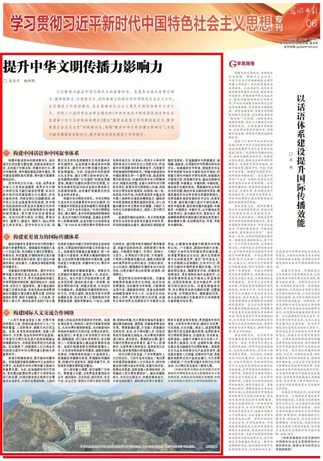 国际传播体系是提升中华文明传播力影响力的重要载体。增强国际传播能力是一个系统工程,其关键在于通过资源整合、机制优化、形态重塑,打破既有的以西方国家为主导的国际舆论格局,建立起与中国国际地位、综合国力、大国担当相匹配的国际传播体系。