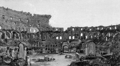 托马斯·科尔所绘古罗马斗兽场内景 资料图片