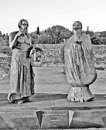 吴为山青铜组雕作品《神遇——孔子与苏格拉底的对话》 资料图片