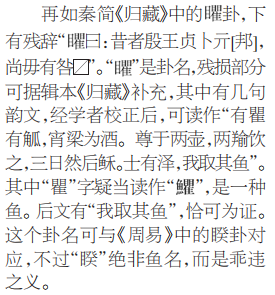 以上几个卦表明,秦简《归藏》中的卦义有时或与《周易》不同,也就是说,虽然两者的卦名有许多相同的地方,但秦简《归藏》或许自有渊源。