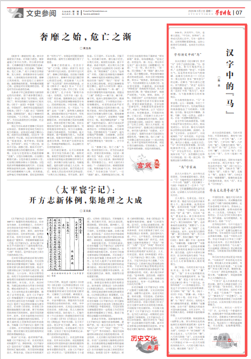 在古人日常生产、出行等生活场景里,马有着重要的地位,因此以“马”为偏旁的汉字逐渐形成了一个不小的“族群”。《说文解字·马部》中就收录了一百多个“马”类汉字,它们就像鲜活的社会生活记录,记录着人与马共同生活的漫长历史。