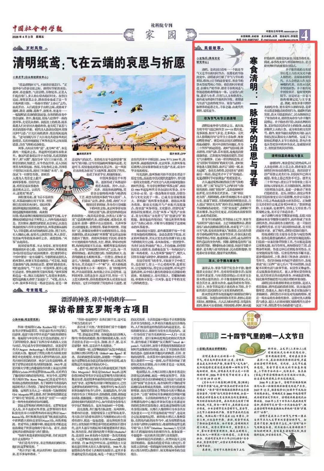 清明,是我国目前唯一一个既是节气又是节日的时间节点。在漫长的节俗流变中,清明逐步打破了节气与节日的界限,吸纳上巳节的游春宴乐、寒食节的禁火祭祖等核心节俗,将自然时序的更迭、农耕生产的节律、踏青寻春的闲适与祭祖追思的肃穆融为一体,让哀伤与欢愉、逝者与生者、自然与人文和谐共生,最终成为阳春时节兼具科学性、肃穆感与生活气息的传统节日。寒食与清明一脉相承的追思之礼、寻春之趣,由此代代相传,延续至今。
