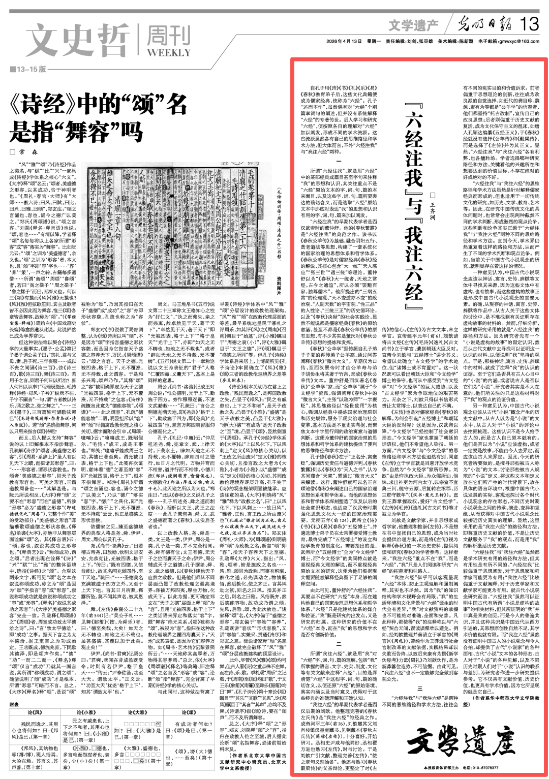 刘歆是文献学家,并非思想家或哲学家,他整理和推崇《左传》,不是想在书中宣扬自己的思想,或为当时社会提供治理方案,而是将《左传》视为解释《春秋》的一本历史资料,提供阅读和研究《春秋》的学者参考。这样看来,“我注六经”重点不在“我”,而是“六经”,“我”只是人们阅读和研究“六经”的拓荒者和引路人。